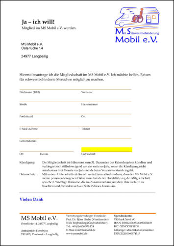 JA - ich will Mitglied im MS Mobil e.V. werden.