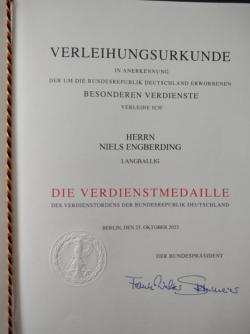 Bundespräsident am 25. Oktober 2023 Herrn Niels Engberding für